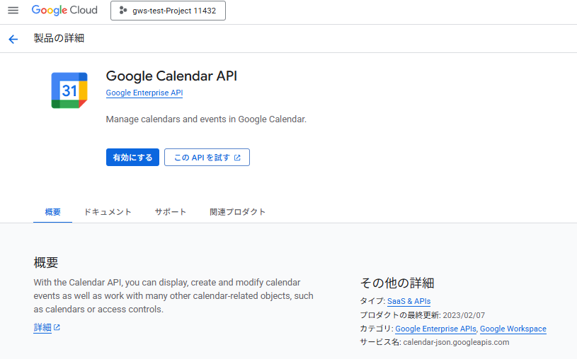 GWS で利用するサービス(GCP 側で API を有効化)